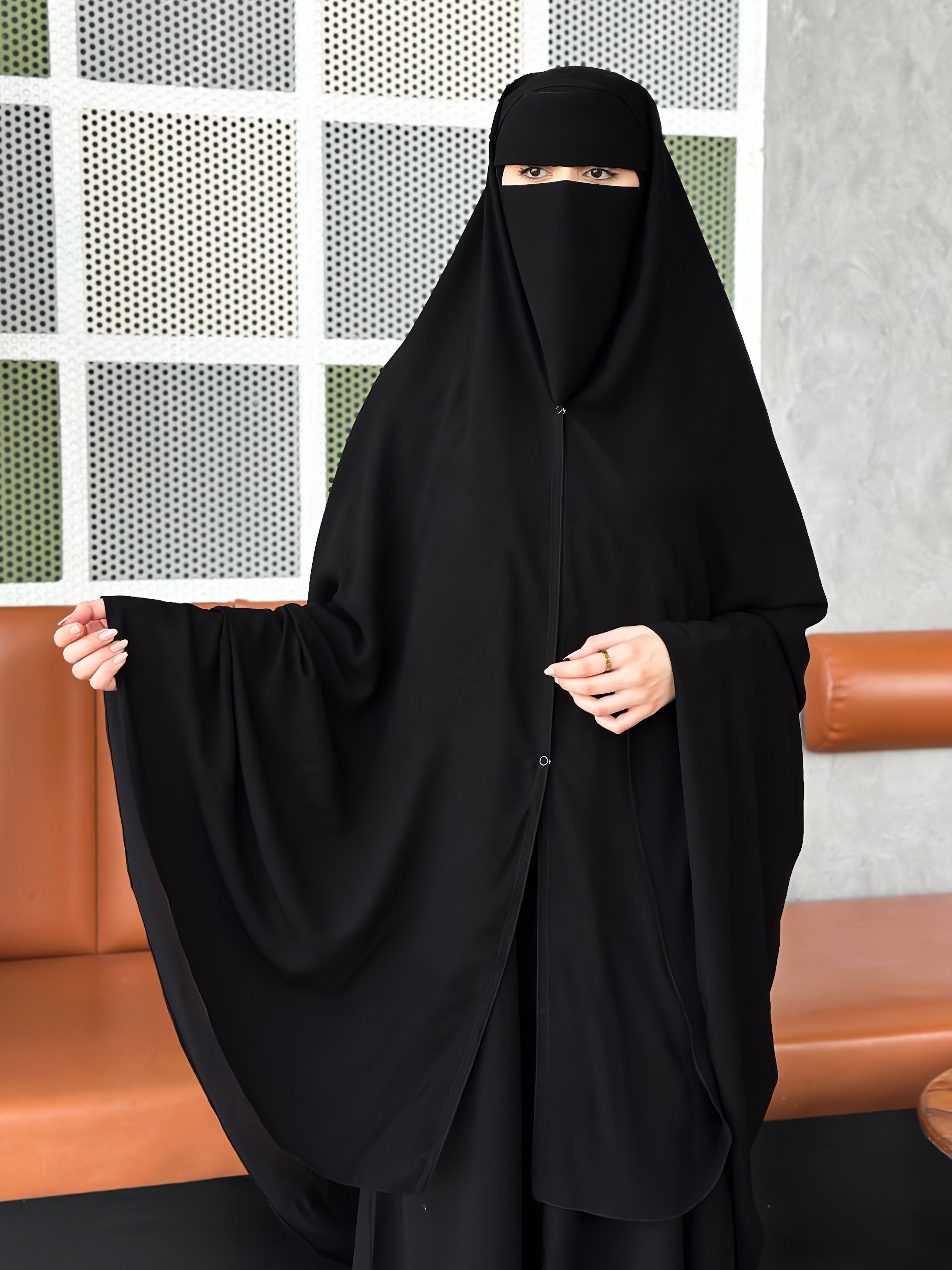 تم تصميم هذا الخمار بطريقة إبداعية من قبل المتجر , له مطاط يثبت على الرأس , طقطق مفتوح من الامام , خفيف الوزن , لا يبهت , لا يشف , لا يمسك الغبار , سواد فاحم .