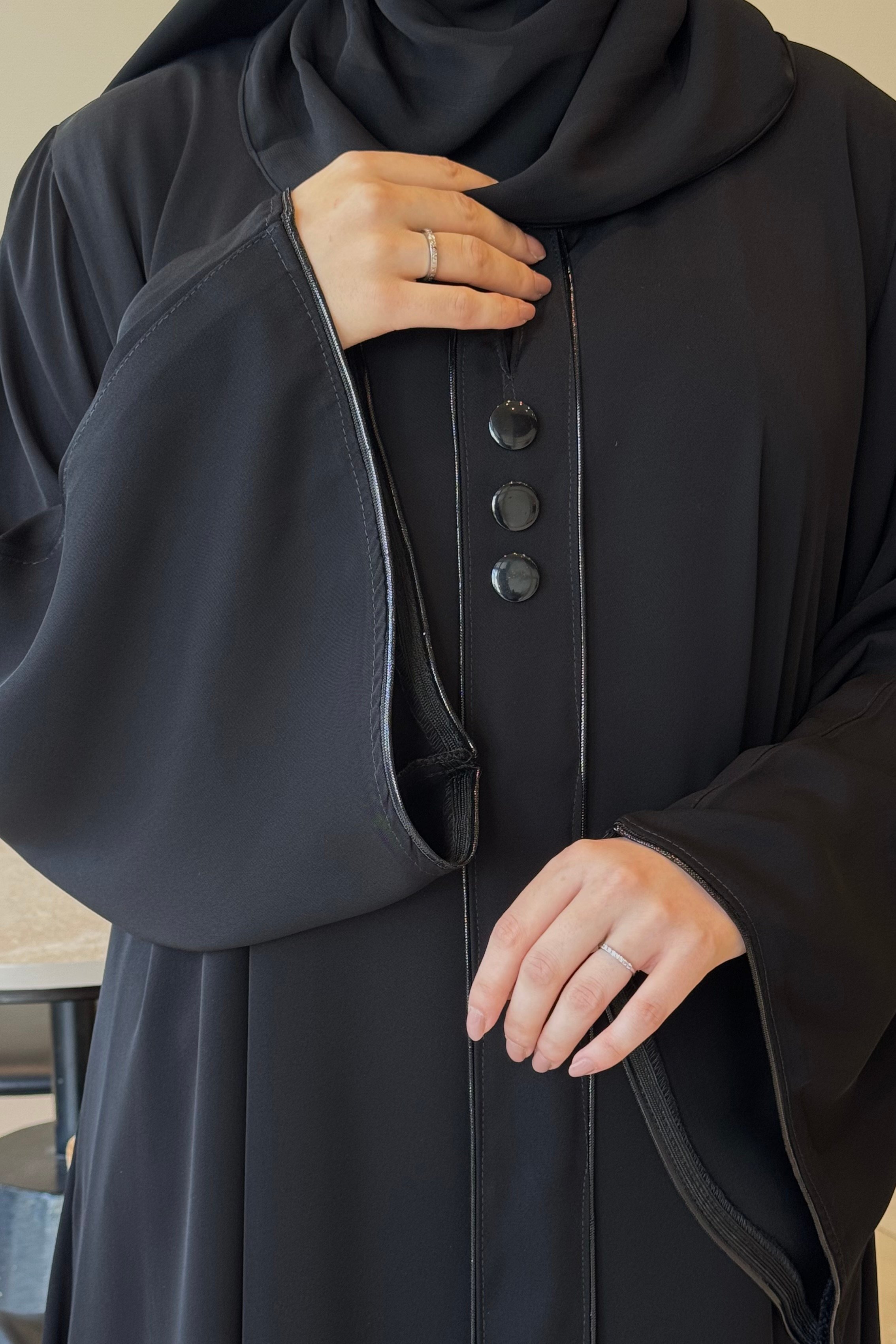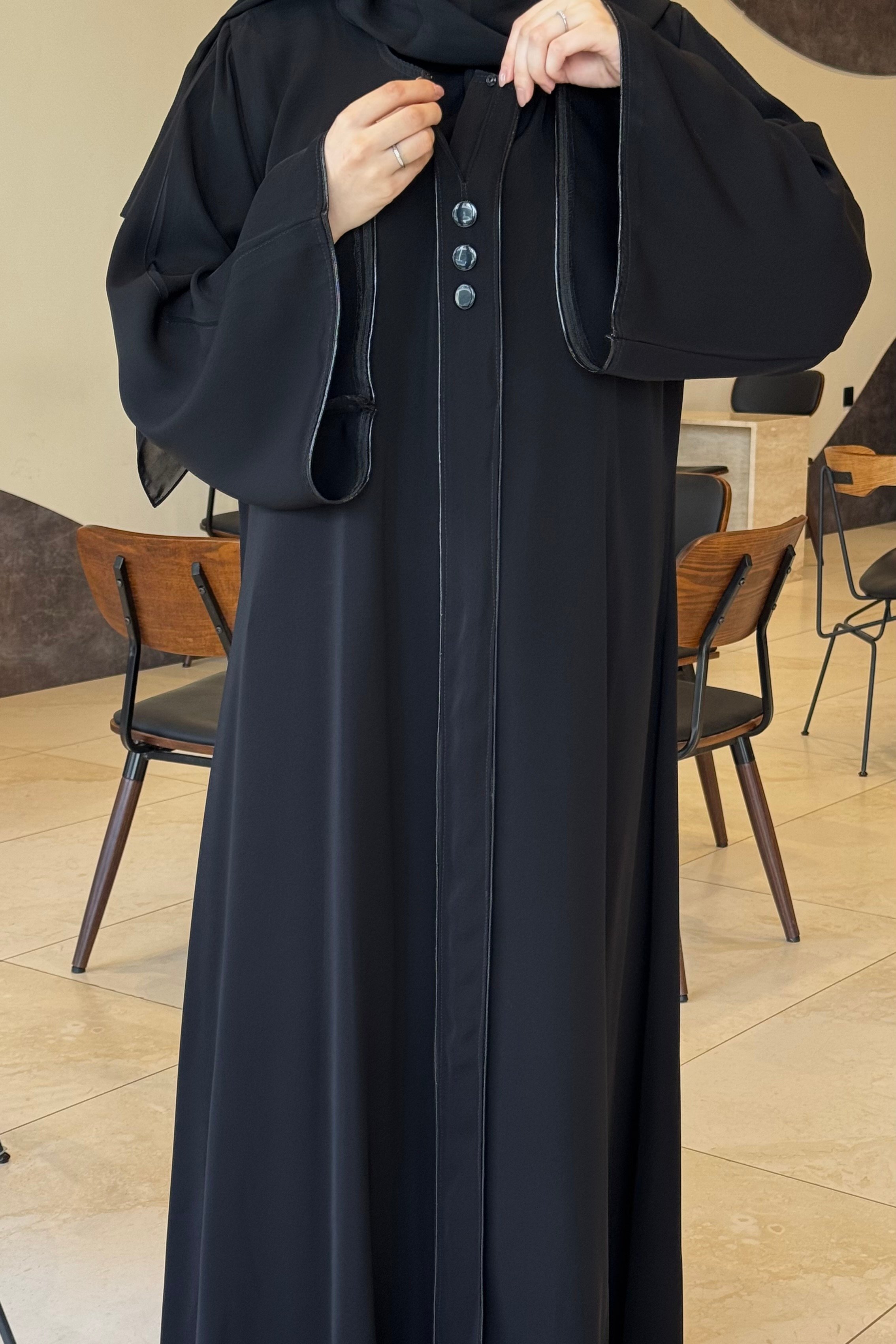 صممت لك هذه العباية لتناسب ذوقك الفخم وتتميز بجودة عالية من افضل أنواع الأقمشة الفاخرة .
